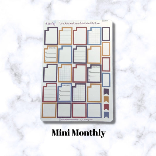 Autumn Leaves, Mini Monthly Boxes, Planner Box Stickers, Mini Calendar Boxes