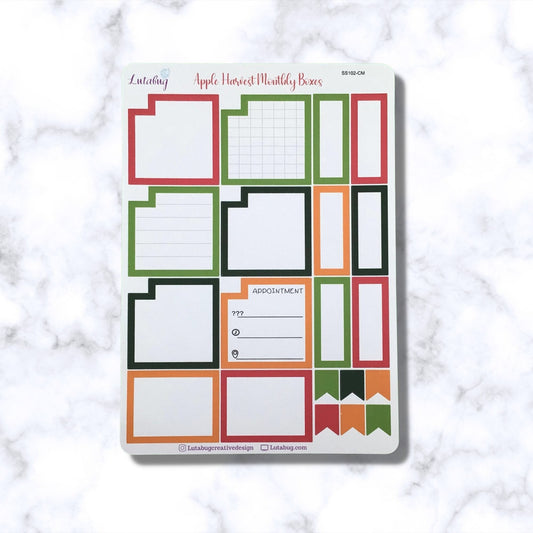 Apple Harvest, Monthly Classic Size, Planner Box Stickers, Functional Monthly Planner Stickers, Calendar Boxes