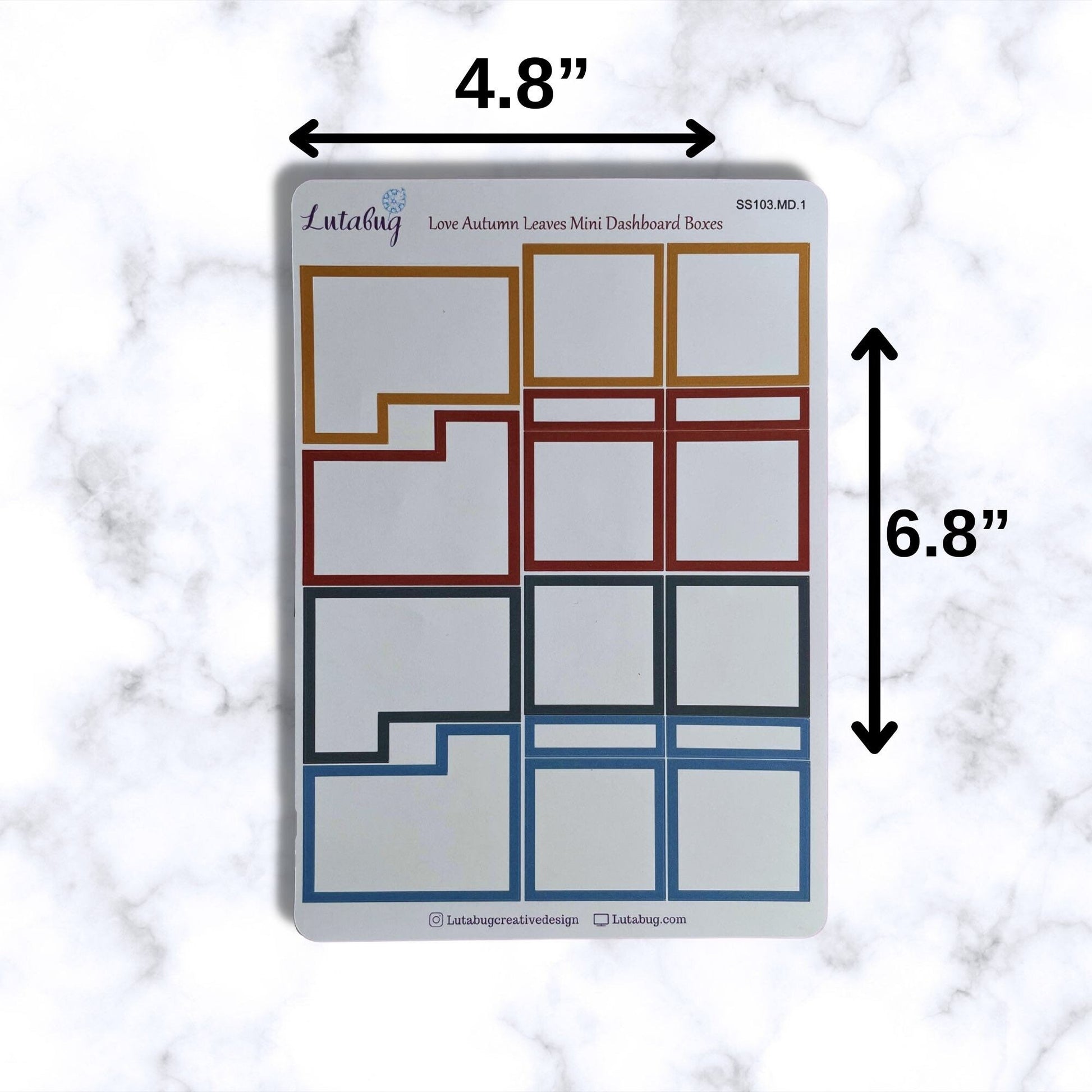 Sticker kit is printed on white matte sticker paper includes 2 pages of coordinating weekly mini dashboard planner box stickers in shades of soft blue, gold, brown and green. You can purchase matching Autumn Leaves deco stickers here: