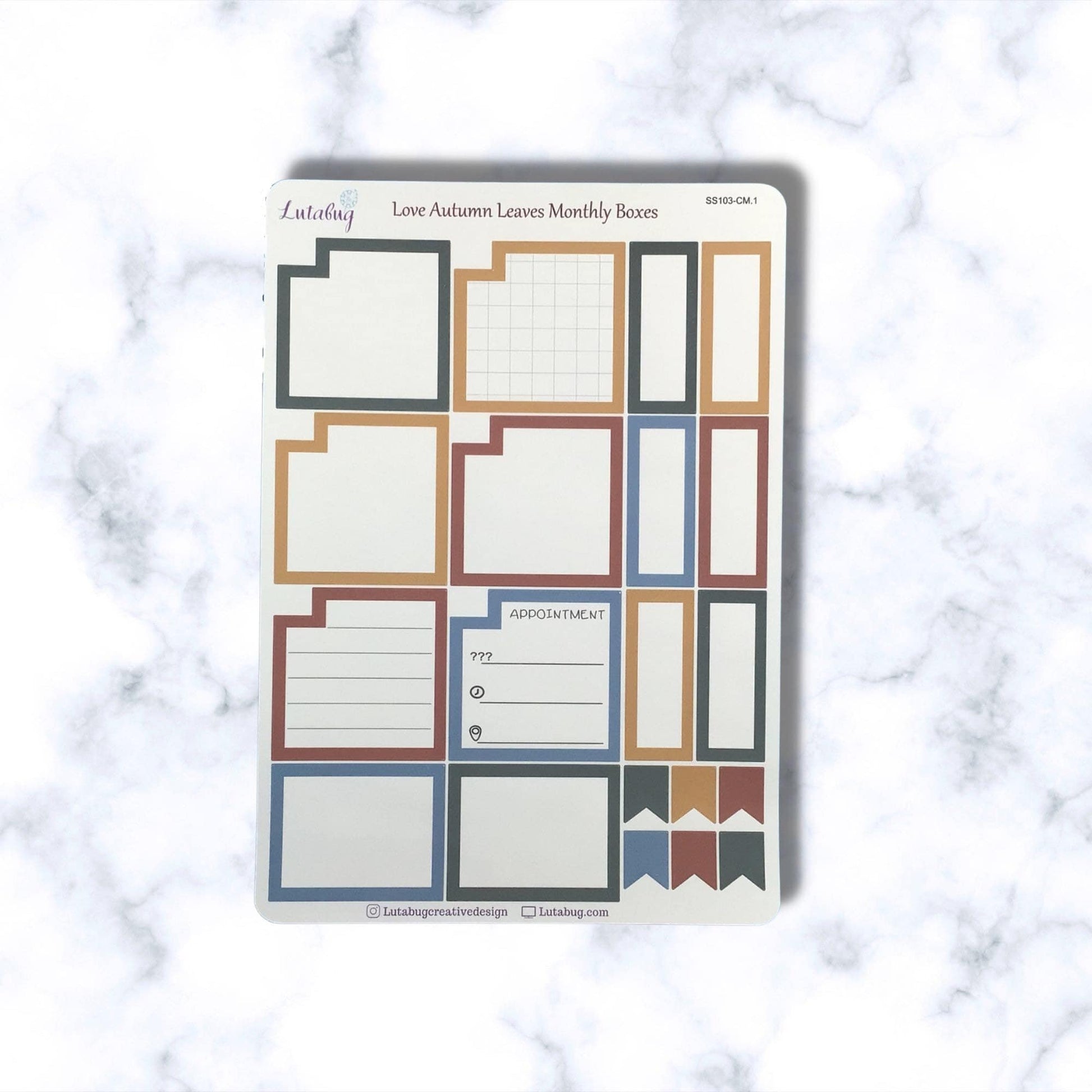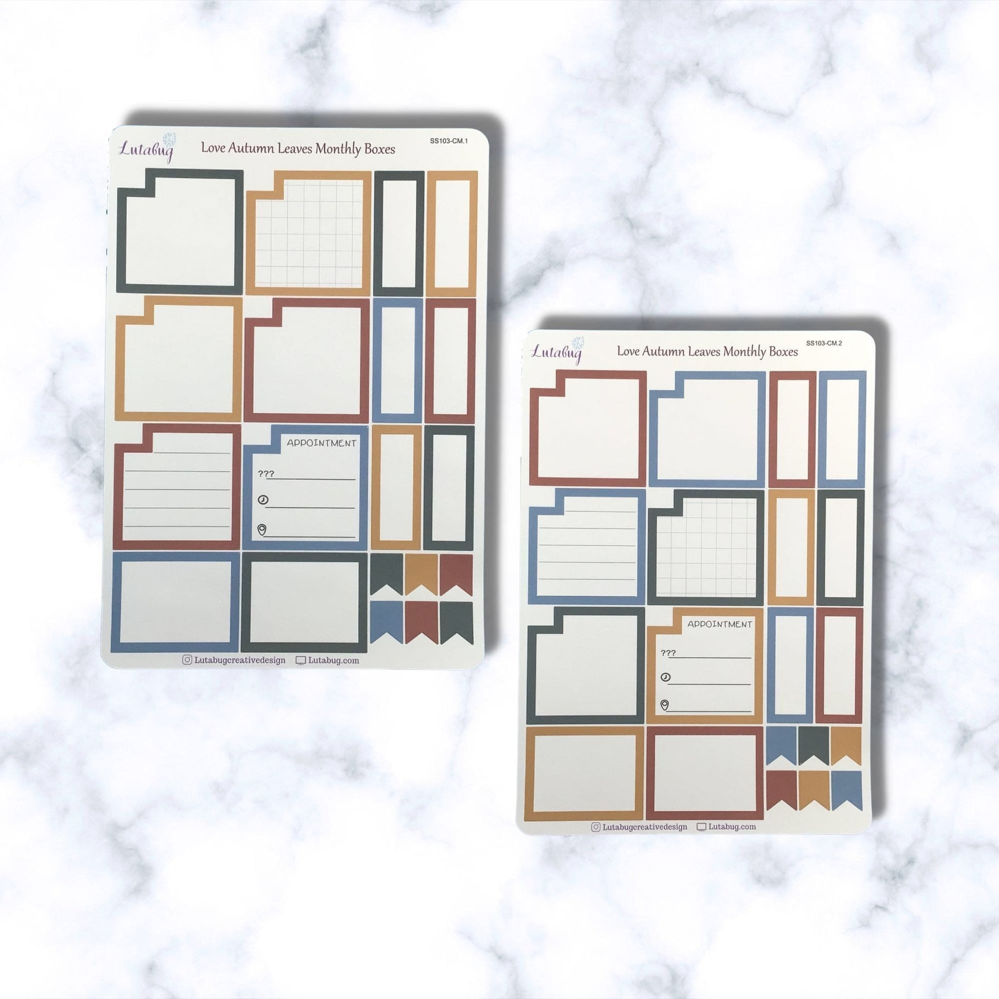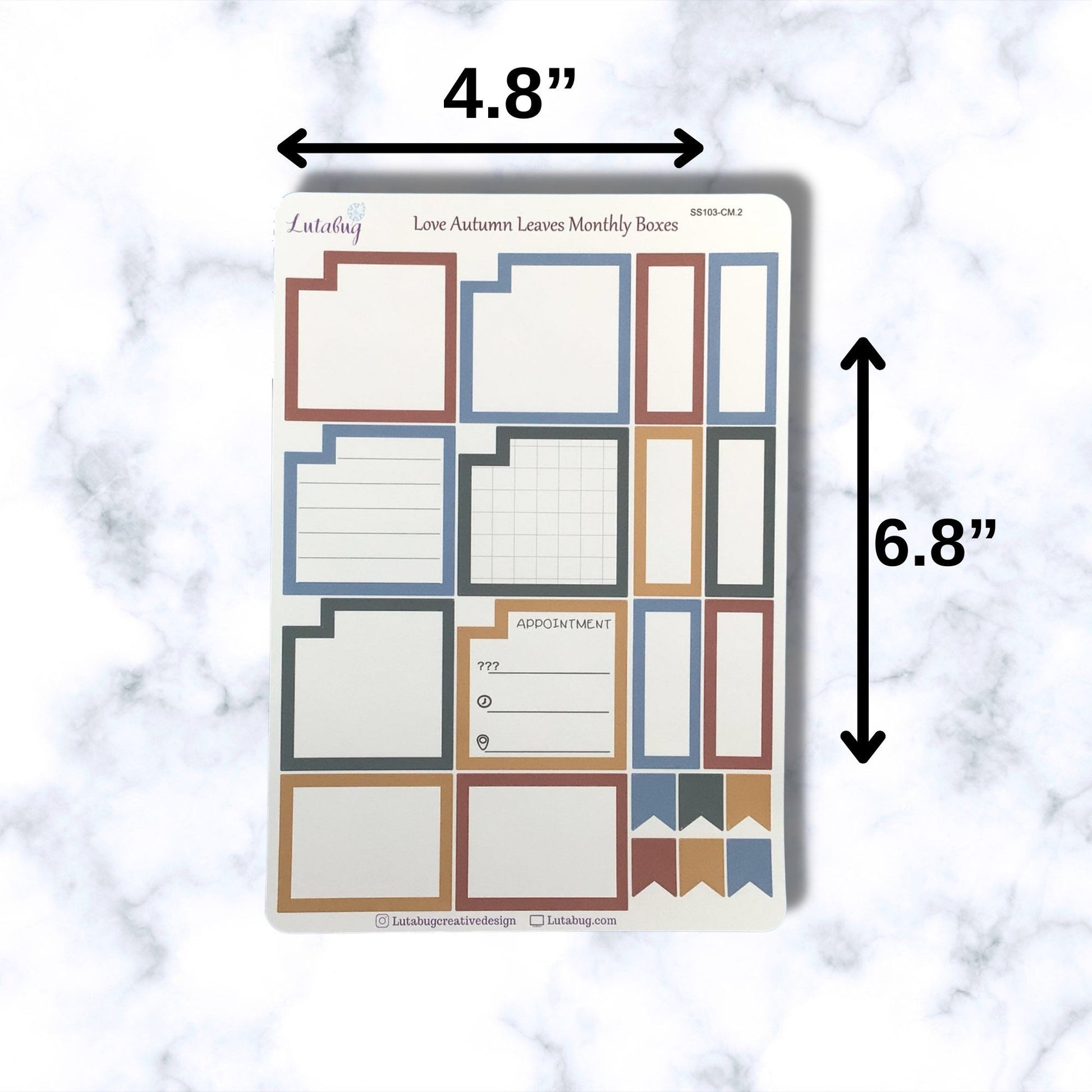 Autumn Leaves, Monthly Classic Size, Planner Box Stickers, Functional Monthly Planner Stickers, Calendar Boxes